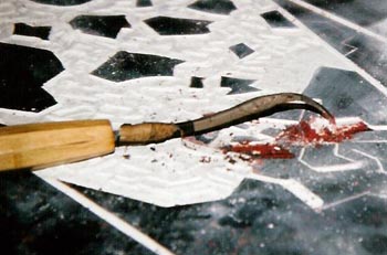 Contrary to sculpture and relief, carving reveals the thickness and the shapes by incision of the lacquer. In Burma, these incisions were used by filing them with gold dusts, or metallic dusts. Otherwise, the lacquer can carve very deeply and reach the coating. This technique is called the Coromandel. Les Glacis